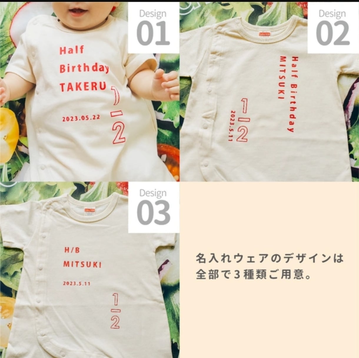 【部屋着にもなる名入れウェア02】 3点セットがおすすめ / 帽子あり / ハーフバースデー衣装 / おうちスタジオ